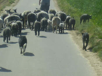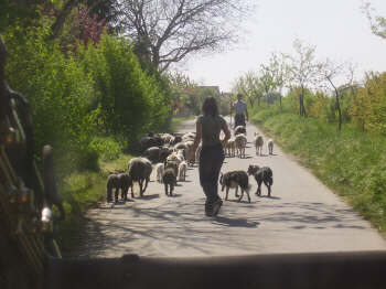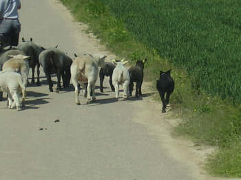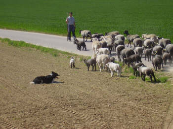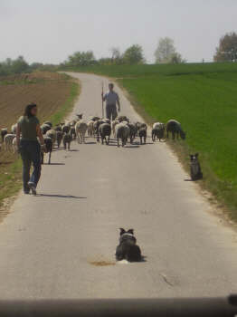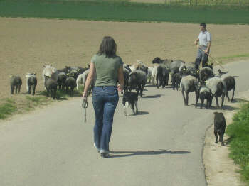 Bildergalerie Schafe: Seite 5Auf geht's hinaus auf die Weide 20.04.07: Heute haben wir unsere Schafe und Lämmer hinaus auf die Weiden gebracht. Es war ein harter anstrengender Weg, doch dank der Hilfe von Nicole und unseren beiden Hunden hat alles einwandfrei funktioniert.