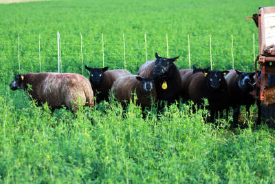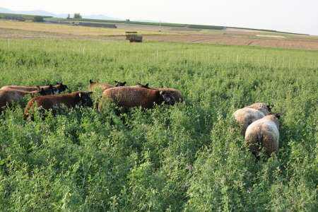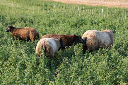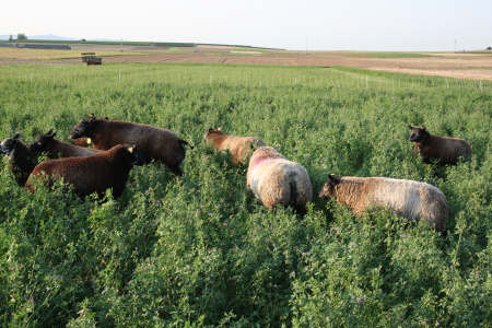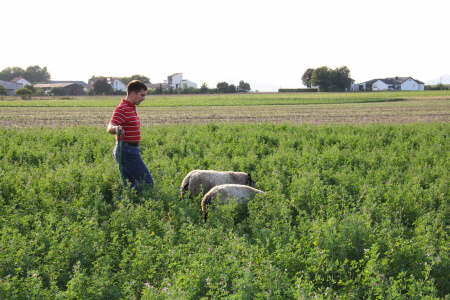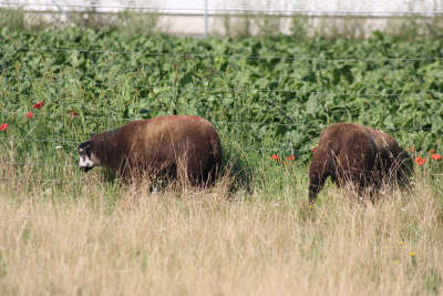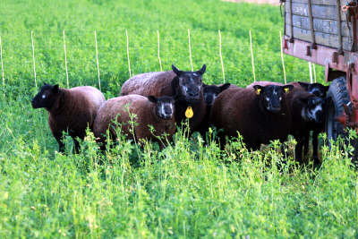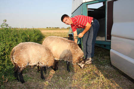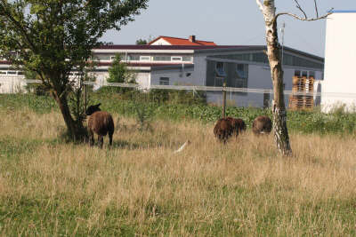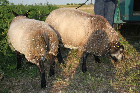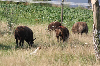 07.09.09: Gismo und Goofy - unsere neuen Zuchtböcke - kommen zu unseren anderen Böcken auf den Klee